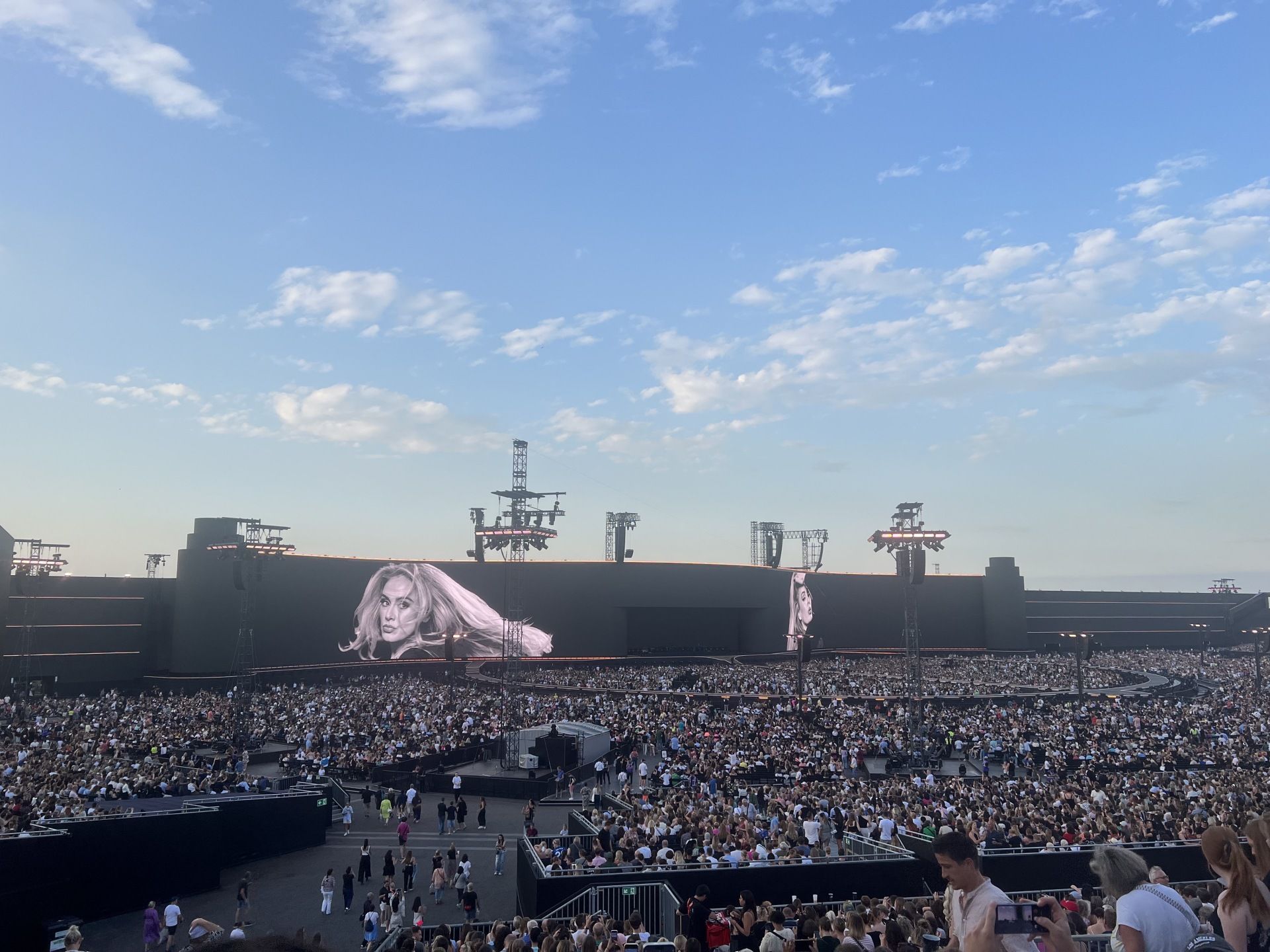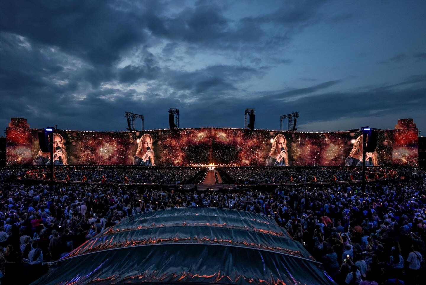 演唱会开始前,阿黛尔在社交平台上流露的兴奋仿佛要溢出屏幕:“一个围绕我想举办的任何演出而设计的,独一无二的定制临时体育场?我想不出比这更美妙的方式来度过我的夏天了!”不负万众期待、值得远道而来,700位工人在慕尼黑展览中心搭建了这个独属于阿黛尔和歌迷们的露天场地。这个4万平方米、堪比主题公园的场地包含了演出舞台和摩天轮、美食城等娱乐场所,其中演出场馆每晚可容纳8万人,共有近80万人次前来聆听阿黛尔的灵魂之声。